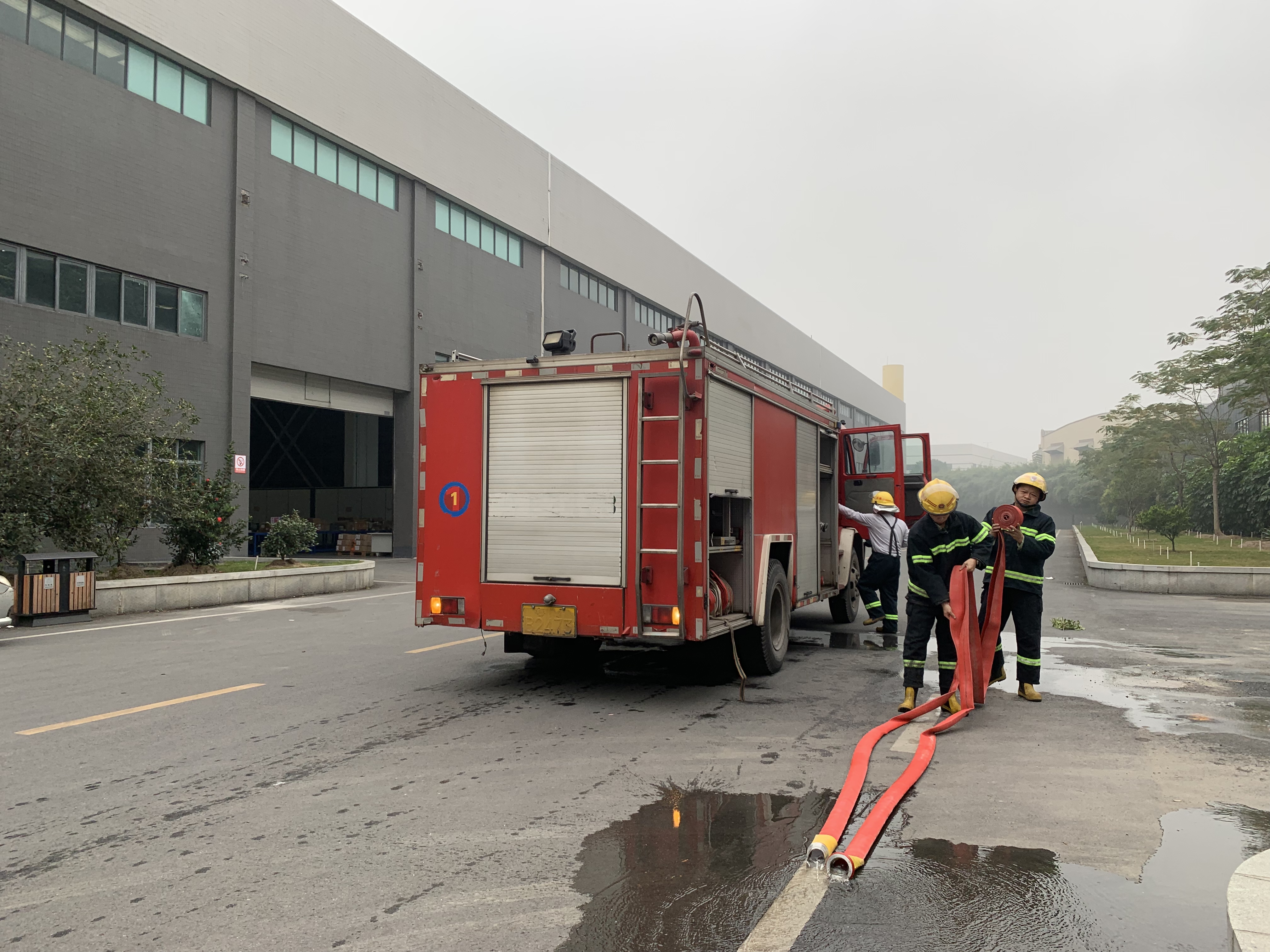 消防大队模拟火情进行灭火