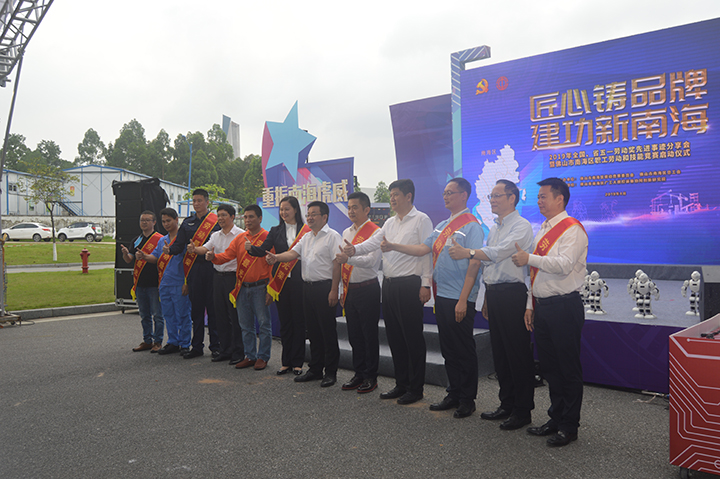在南海区2019年全国、省五一劳动奖先进事迹分享会上,佛山市总工会常务副主席蒋庆,南海区委副书记、区长顾耀辉,区委常委、组织部长潘伟华,区人大副主任、区总工会主席朱伟新,区总工会常务副主席吴忠林等市、区领导和20多个区直单位代表,以及来自7个镇(街道)的职工约500人一同感受了榜样的力量,汲取了匠心和追梦的正能量。