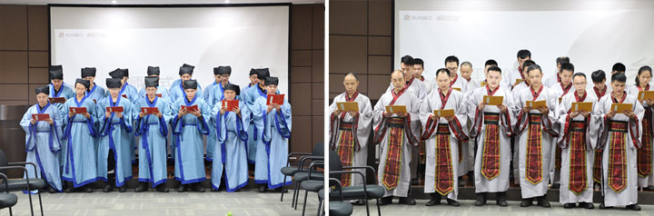 2020年储备生(学徒)师徒结对拜师会活动在行政楼三楼培训室举行,师傅和徒弟们都穿上了拜师仪式服装,师傅们英姿飒爽,徒弟们神采奕奕,现场气氛庄严端正。