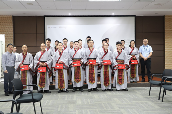 最后,集团副总裁刘詹发表了热情洋溢的致词,讲述了儒家思想中的“天地君亲师”理念,形容师徒是一个互相影响、互相促进的关系,期望大家互相学习、共同进步。