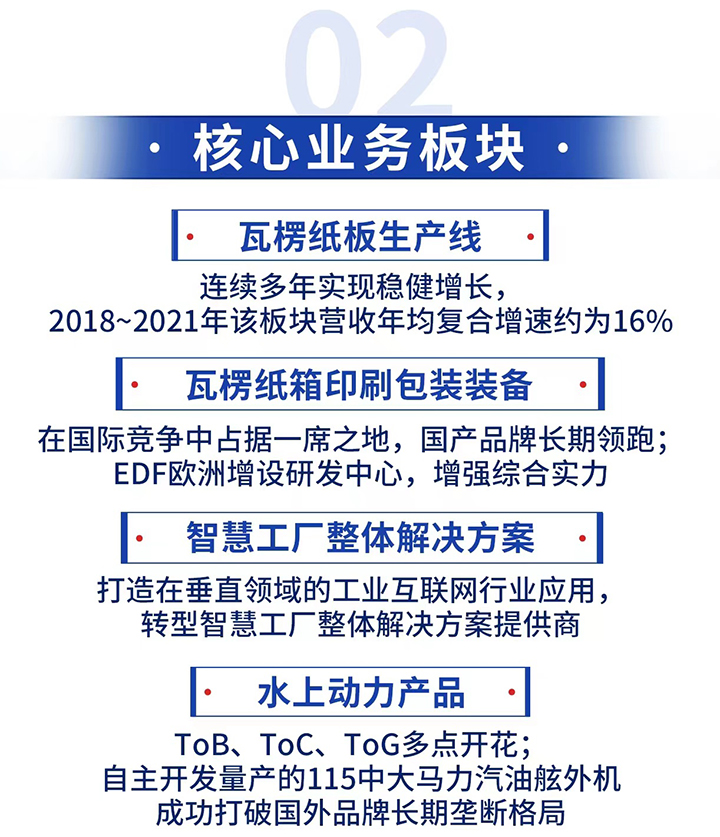 我们依托智能包装产业链为基础,打造智能物流全产业链,并沿着“中国智能制造”方向,在中国产业转型升级发展的关键阶段,引领产业智能转型,最终实现“智能包装”、“智能工厂”、“智能制造”解决方案。