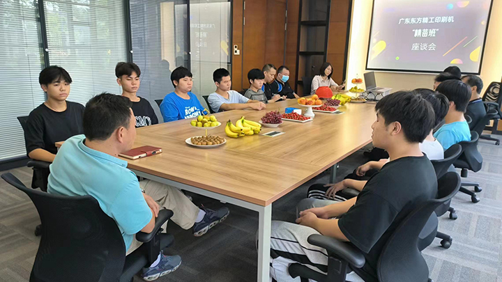 2022年印刷机事业部共举办“精苗班”座谈会四次,本次座谈会是对过去半年的储备生培养工作的一个阶段性总结。在后续培养工作中,公司会继续安排专业技师手把手辅导储备生,帮助他们成长为合格的技术人才。